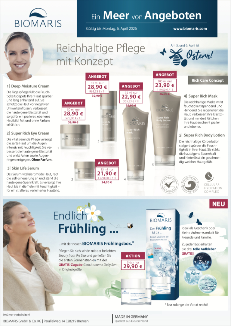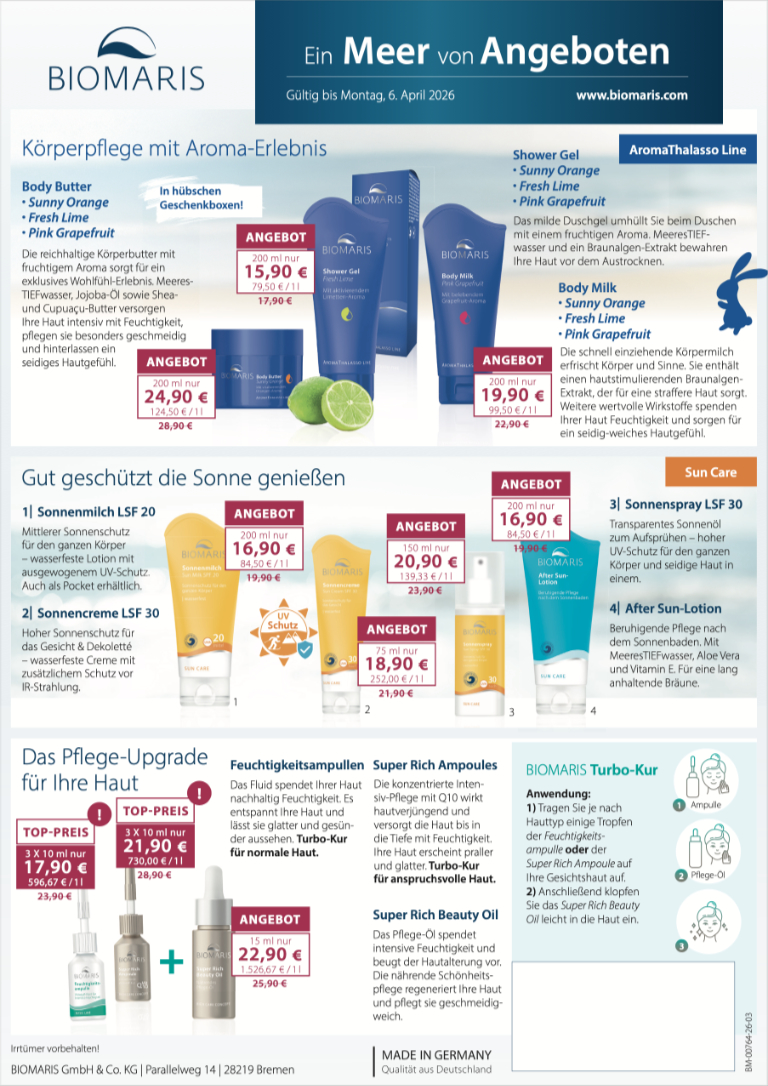 Pflegen Sie Ihre Haut mit unseren Biomaris Angeboten!